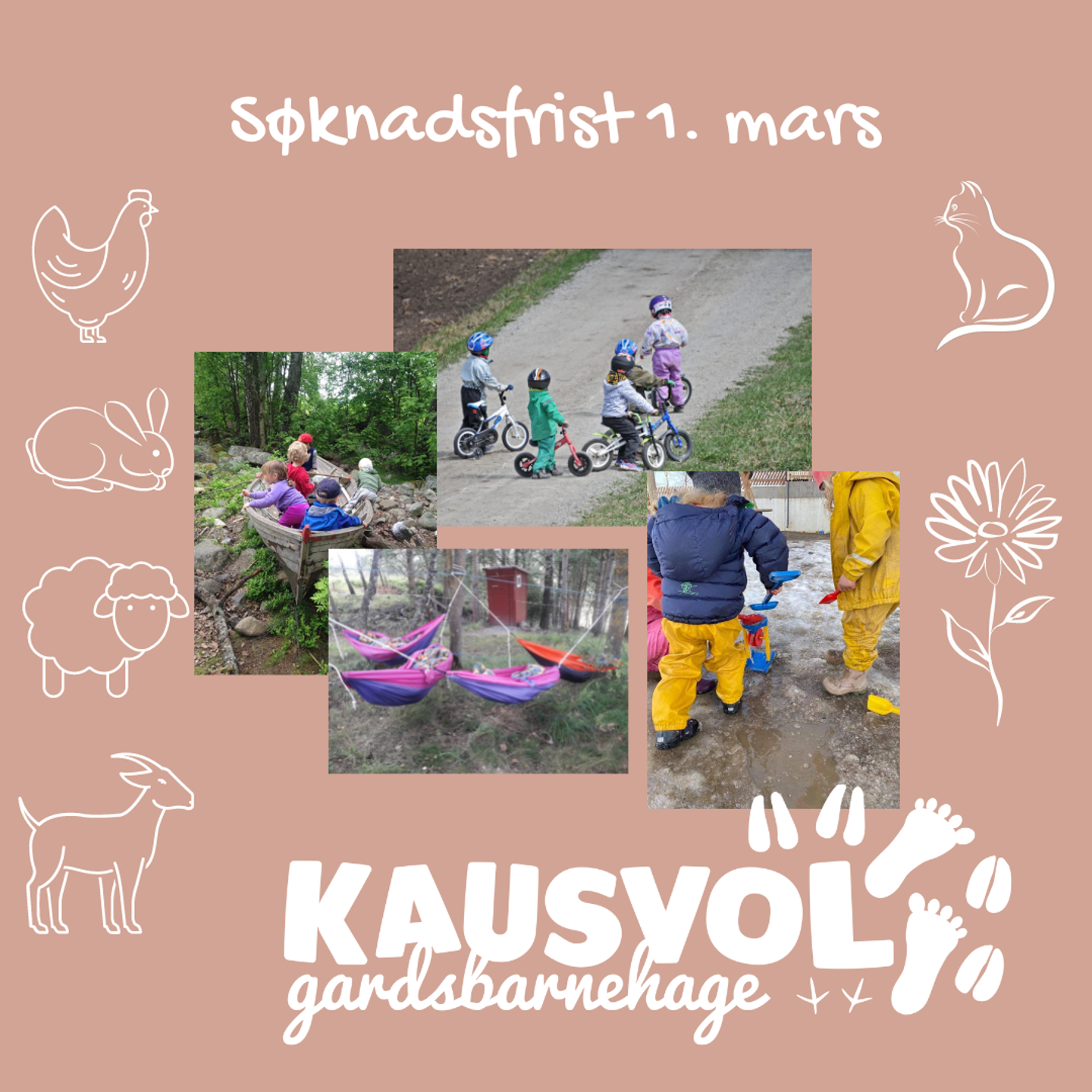 Vi har ledige plasser i barnehagen, for oppstart fra høsten. Vi tar gjerne i mot besøk, så ta kontakt med Live på epost: live@kausvol.no eller telefon 45908420 eller Ragnhild 99253640 for å avtale. Søknadsskjema finner dere på Stange kommune sine nettsider. Det er åpen dag i alle barnehager torsdag 8. februar mellom 17 og 19. Ta kontakt med oss for å avtale besøk - denne dagen eller en annen dag dersom det passer bedre. Hjertelig velkomne:)
