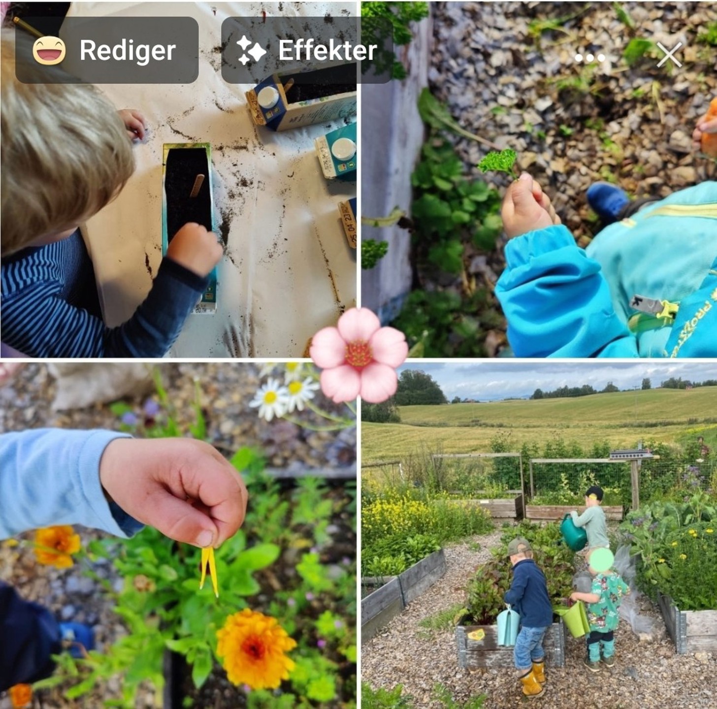 Vi har startet jobben med å så frø. Dette gjør vi for at barna skal lære hva som må til for at et frø skal bli til et bær, en frukt eller en grønnsak som vi er avhengige av for å kunne leve. Barna får lære om bærekraftig utvikling i miniatyr her i barnehagen. De lærer om å ta vare på livet på jorda, hverandre og seg selv, få dekket sine grunnleggende behov uten å ødelegge framtidige generasjoners mulighet til å dekke sine. Vi bidrar til at barna kan forstå at dagens handlinger har konsekvenser for framtiden og gir barna naturopplevelser så de føler omsorg for og tilhørighet til naturen.