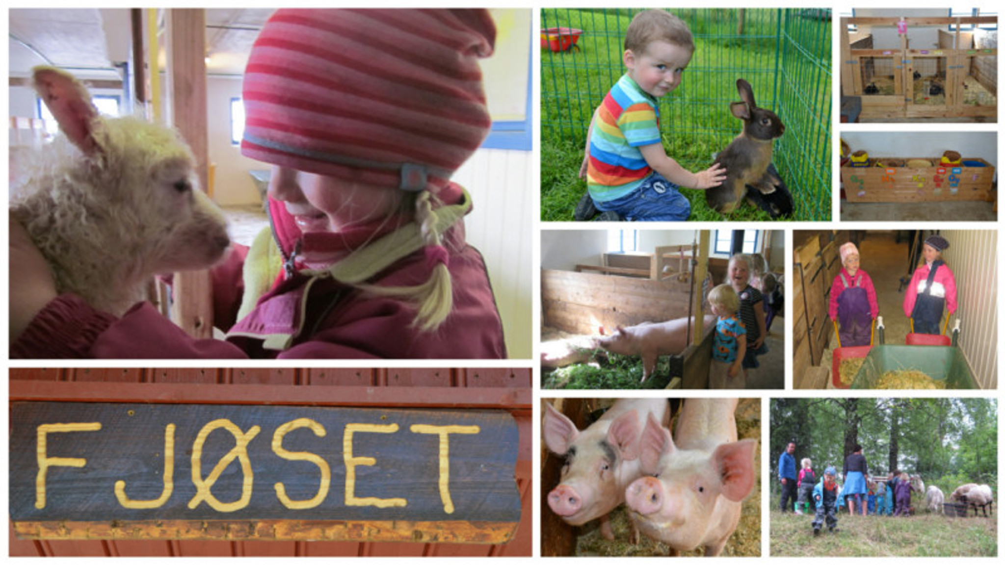 Fjøset bruker vi aktivt i vårt pedagogiske opplegg i barnehagen for dyr påvirker de fleste av oss på en positiv måte. Vi lærer mye om adferd og kroppsspråk i omgang med dyr. Alle gruppene unntatt småbarna har fjøsstell på omgang gjennom hele året og da er de ansvarlige for å fore og stelle dyra samt holde fjøset i orden. Småbarna bruker også fjøset flittig, de er ofte nedom for å kose og stelle litt. Dette har betydning for trygghetsfølelsen i fjøset når de skal ta del i ansvaret. Arbeid i fjøset er med på å la barna få ta ansvar og gi omsorg til andre. Vi bruker fjøset til å la barna få kjennskap til livets syklus, fra fødsel til død og gjennom dette få kunnskap om sammenhenger vi er avhengige av for å kunne ha mat på bordet. Avdelingene har et dyr de fordyper seg i og har ekstra ansvar for. Alle pedledere planlegger ut i fra sin gruppes utviklingsnivå, med utgangspunkt i fra fødsel til død, hunn og hann, bruk av kjøttet, anatomi, forskjell på fòr og nytte for bonden.